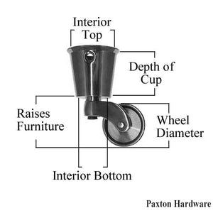 Round Cup Casters, Antique Brass, 1 inch wheel
