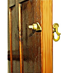 Cabinet Door Turns are an easy to use traditional style dating back to the late 18th century. This Dutch Colonial design has a bow shaped, stirrup handle. To open or close door simply rotate stirrup handle.  This action engages finger mechanism, in back of door.  Stem length easily adjusts to fit most door thickness. Mounts from a single hole. Use on one or a pair of doors.